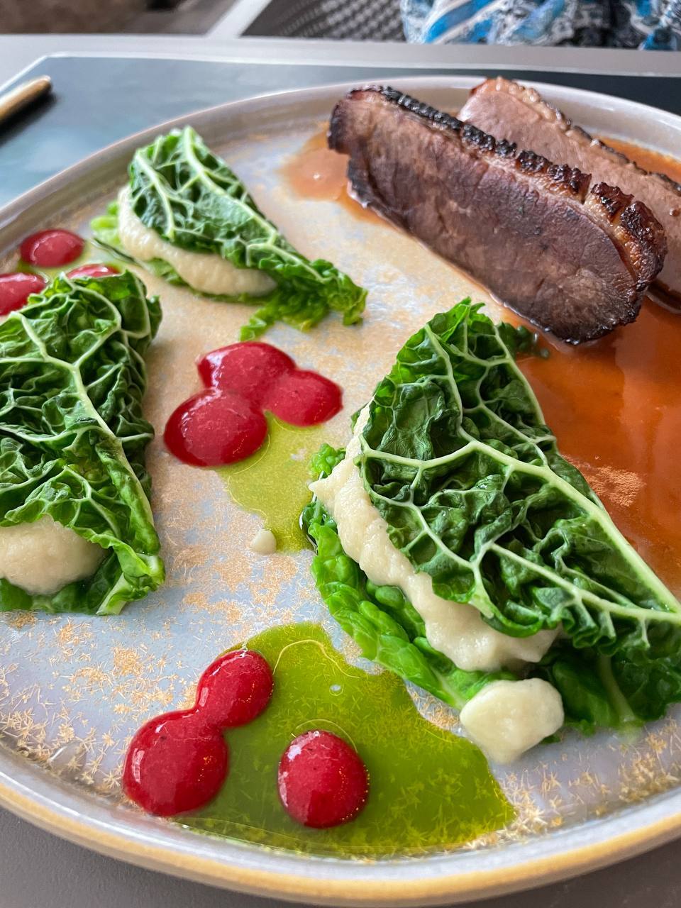 Cabbage leaves filled with some local cheese